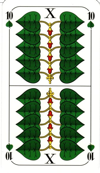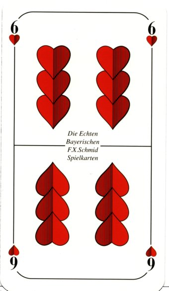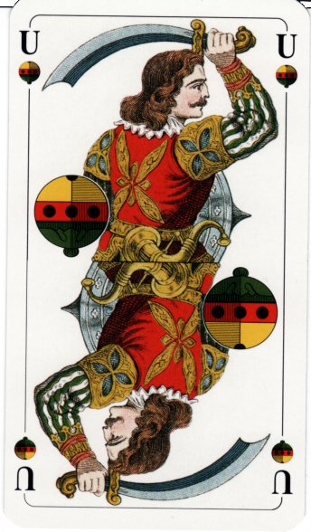 However, the double-ended cards are much better for playing games, which is the very reason why the Doppeldeutsche pack is double-ended these days. Add to that the lack of indices, and this pack becomes less attractive for games. The only way to tell Obers from Unters is to look at the location of the suit symbol in the card.