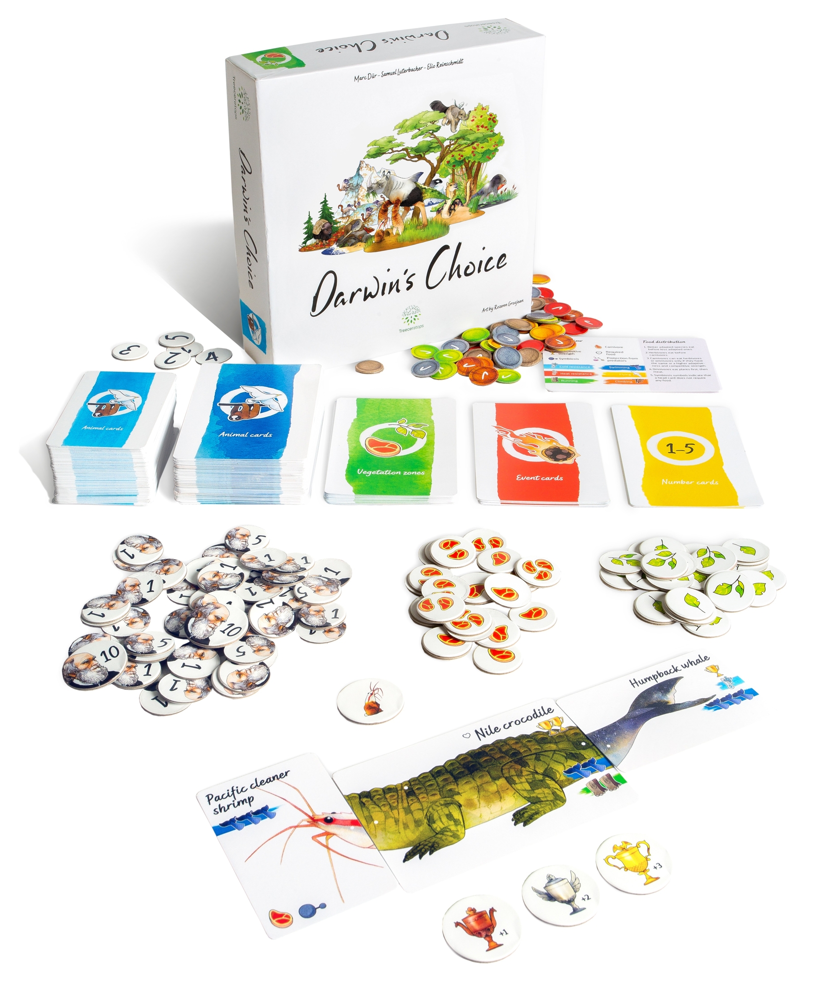 The game: Darwin’s Choice by Marc Dür, Samuel Luterbacher and Elio Reinschmidt. The game is presented in Kickstarter by Treecer in 2018.