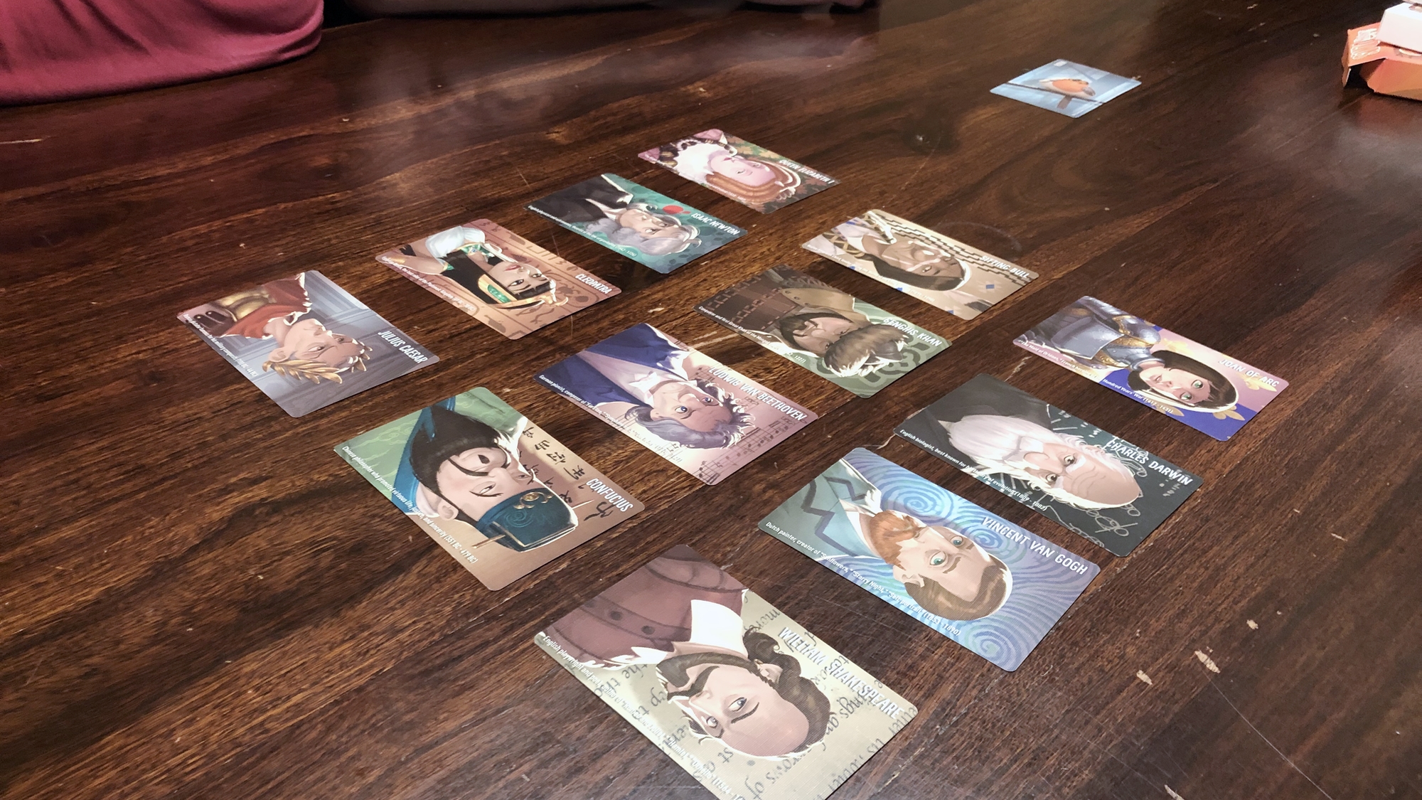 Twelve character cards are laid down on the table, face up. One of the players tries to get the other players to guess which of those twelve characters is their secret character.